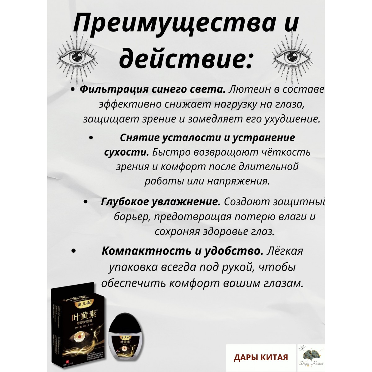 Компактность и удобство. Лёгкая упаковка всегда под рукой, чтобы обеспечить комфорт вашим глазам.