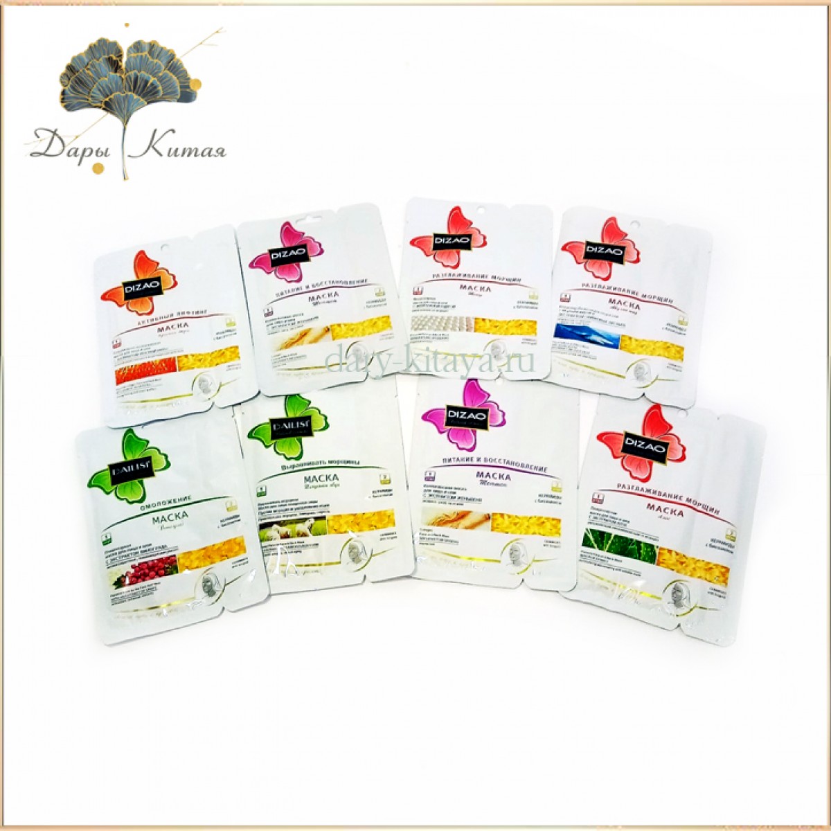 Пла­центарно-коллагеновые маски  "Dizao" - 2 этапа, для лица и шеи с кера­мидами и биозолотом  в ассортименте.  ..