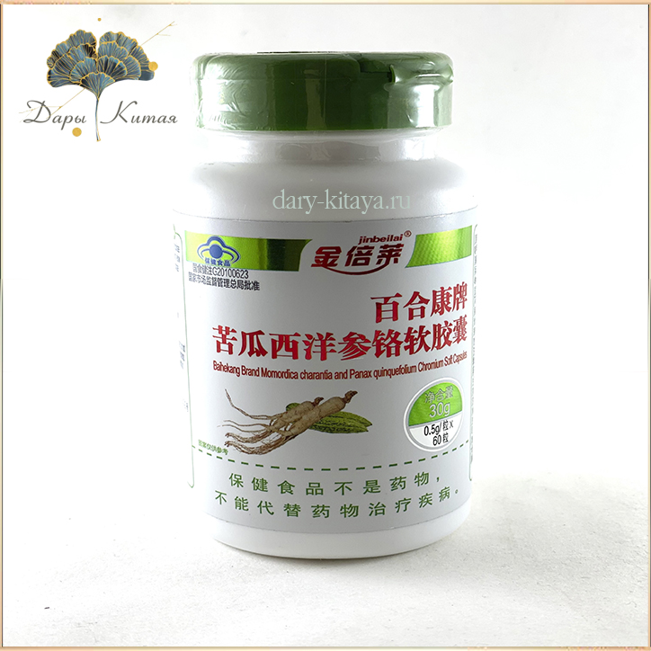 Капсулы от сахарного диабета. Горькая дыня, женьшень и восковая моль. Baihekang Brand Momordica charanba and Panax guinguefolium Chromium Soft Capsules 60 шт.