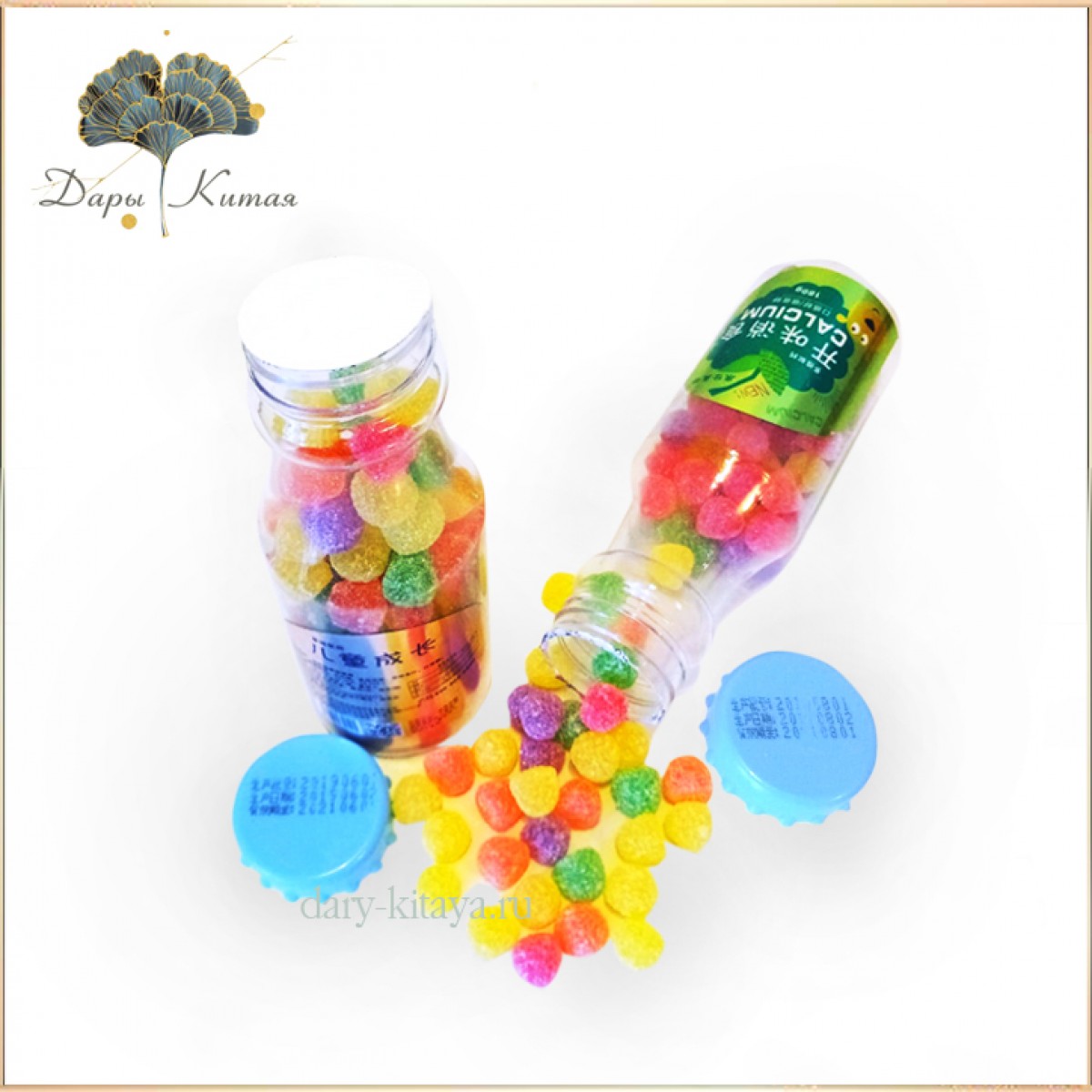 Состав : многомерный мягкий кальций, концентрированный сок, желатин, сахар, крахмал.