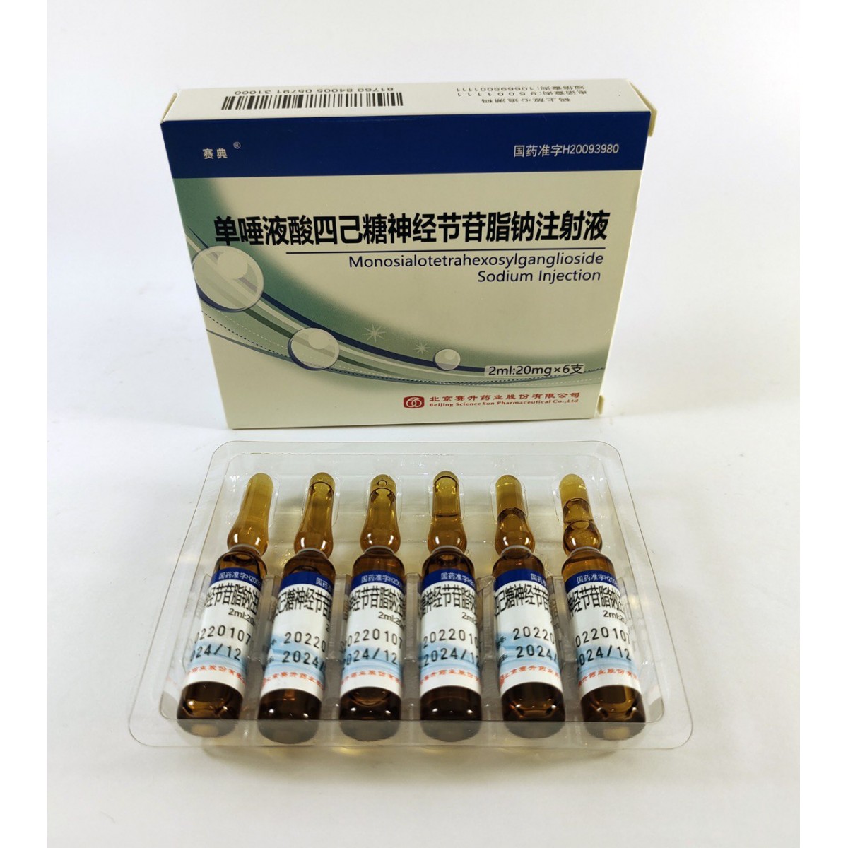 Monosialotetrahexosylganglioside Sodium Injection Pinyin: Dantuoyesuan Sijitang Shenjingjieganzhina Zhusheye Parts. 6 шт х 20ml.