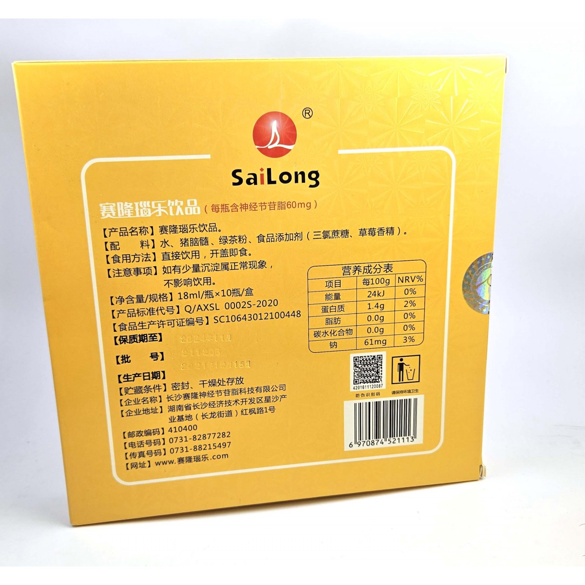 Производитель: компания Changsha Sailong Ganglioside Technology Co., Ltd. Адрес: Промышленная база Синша, Зона экономического и технологического развития Чанша, провинция Хунань, Китай.