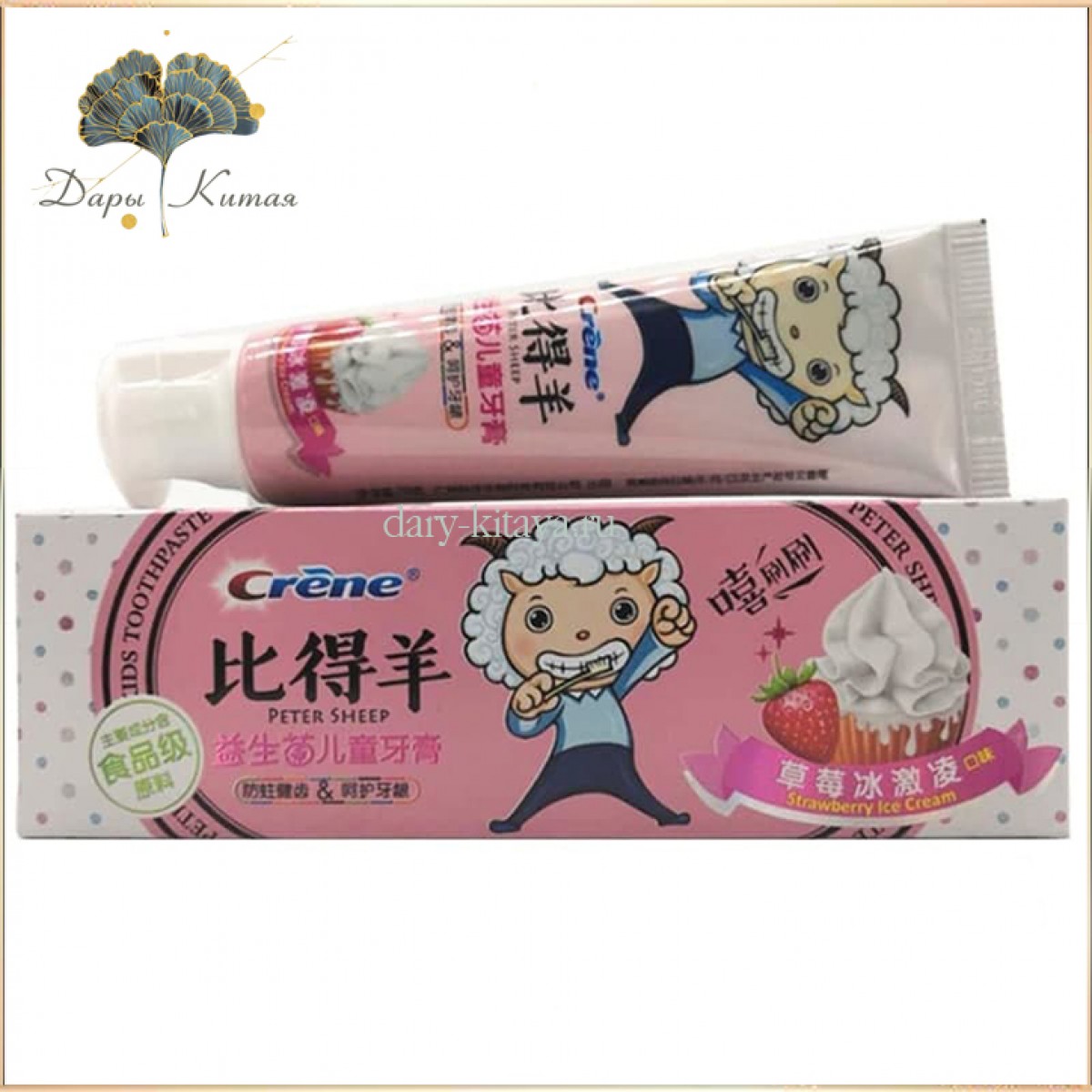 Детская зубная паста с пробиотиками. Со вкусом клубничного мороженного " Овечка - Петя "(PETER Sheep) 70 мл.